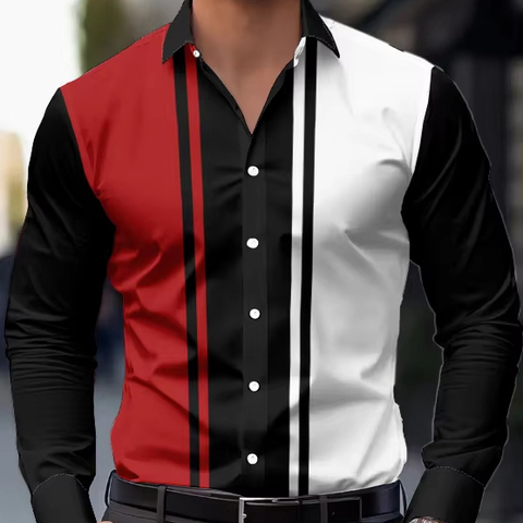 अभिनव 3 डी मुद्रित साटन पुरुषों की लंबी आस्तीन खिंचाव-फिट शर्ट लुभावनी आरामदायक क्रिमसन अमूर्त कला बयान टुकड़ा