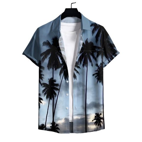 Vente en gros été hommes décontracté à manches courtes imprimé hawaïen plage chemisier chemises à séchage rapide anti-rides tissé Satin hauts