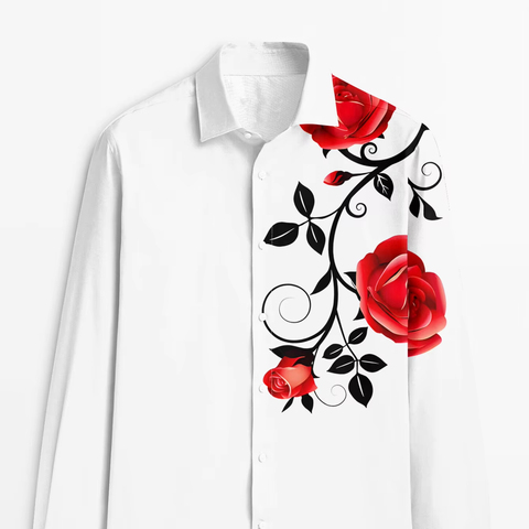 पुरुषों की शीतकालीन प्रिंट आकस्मिक शैली सैटिन शर्ट सफेद झुर्रियों-प्रतिरोधी और सांस लेने योग्य एकल ब्रीस्टेड एक्स आकार
