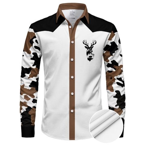 Camisa de satén de estilo casual con estampado de invierno para hombre, blanca, resistente a las arrugas y transpirable, talla XL de un solo pecho con servicio OEM
