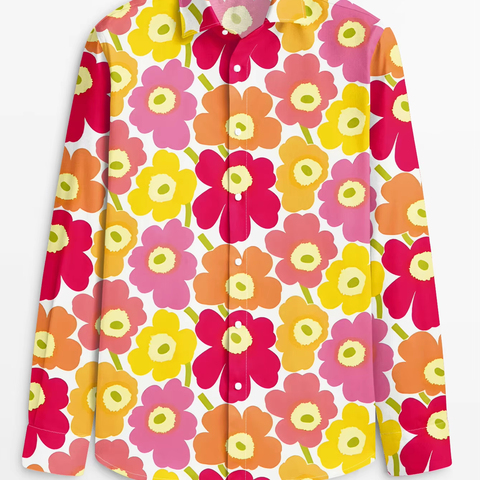 Camisa de manga larga de satén rojo informal con estilo y transpirable para hombre con estampado floral vibrante