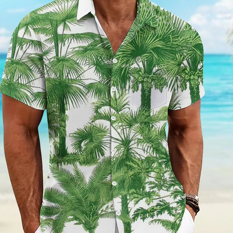 2025メンズ軽量サテンハワイアンシャツトロピカルリーフプリント通気性半袖ビーチバケーションまたはワーク用