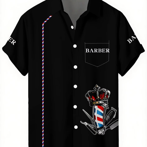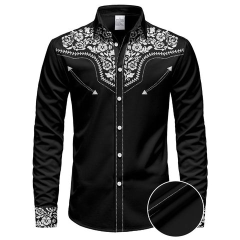 男性用カジュアル長袖シャツスタイリッシュな黒柄ビジネスカジュアルオフィス & レジャー用