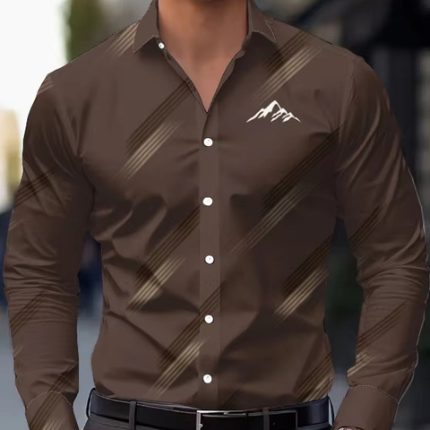 2025 Người Đàn Ông Mới Của Trang Phục Chính Thức Áo Sơ Mi In Dài Tay Áo Thoáng Khí Dệt Nâu Mùa Đông Vải Quá Khổ Văn Phòng Làm Việc Giản Dị Quần Áo-OEM